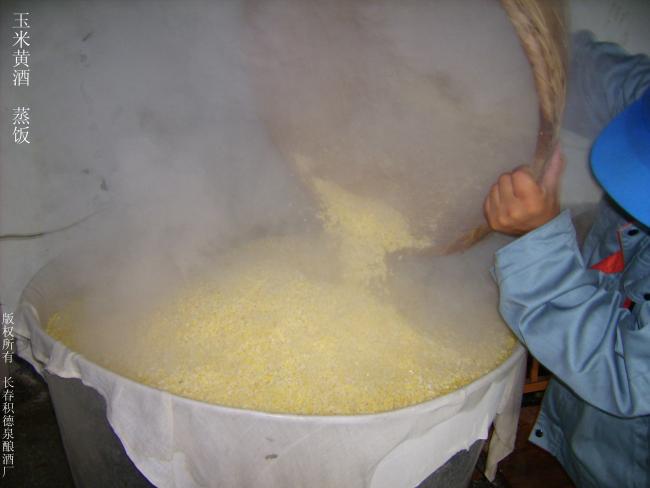C.积德泉自主研发的玉米黄酒工艺,其特征是把东北大苞米脱皮去脐,精制成细馇子。通过浸、蒸、炒等独特工艺,在无菌条件下,入缸液态发酵15天,榨汁为酒,又经低温陈储,煎酒灭菌等操作而成。检测证明,玉米黄酒内含20多种人体必需的胺基酸、多元糖类等营养物质,含量是啤酒的3倍,葡萄酒的2倍,有“液体蛋糕”之美誉。