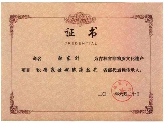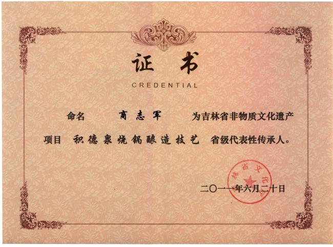 积德泉酒酿造技艺得以传承,商志军同志做出了突出的贡献。