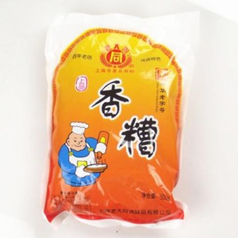 老大同香糟制作技艺,起源于1854年,至今已有160年的历史。优质的原料,精准的配方、较高的工艺要求和鲜明的上海地域特色,使老大同香糟虽历经上百年,但仍历久弥新,越陈越香。选用以麦曲为基料以糯米原料的酿制黄酒后酒糟,按一定比例加入桂皮、茴香、丁香等十余味天然植物香料和香糟引子配制,搅拌均匀后装入酒坛,封口陈化发酵二年以上。原料选用的是冬酿纯手工制作黄酒酒糟,筛选氨基酸态氮、含水量、酒精度、糖度、酸度符合标准的酒糟;香料则选择了纯天然植物香料,且需符合产地、规格和质量等级要求;药引子专门使用老大同祖传秘制工艺,所选用的原料需酿制三年以上的且品质优良的香糟。制作过程中将酒坛进行清洗、蒸汽杀菌和酒坛外刷白、以确保储存、发酵期间香糟部发生变质,其后用荷叶、粽壳封酒坛口,以确保发酵期间的香糟在酒坛内保持在其适应的环境中。再来将酒糟、香料和药引子拌匀后放入酒坛并捣实,其中三匀三翻是制糟要术的关键,所用香料则有不同的粉碎要求,,药引子的制作有规范的程序和要求。并且所需酒糟及加工时间必须是冬九九时段(头九到九九),要求极为苛刻。