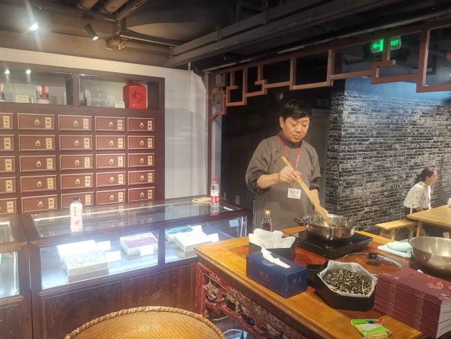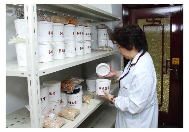 收——当药汁见少,通过搅棒试膏,再用文火收膏,直至煎至起丝状(老药工称之“挂旗”)或滴珠状成膏。最后倒入消毒后的膏滋甏里,放进冷库保存。