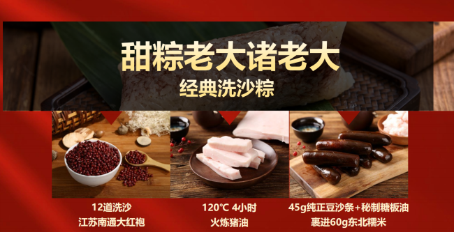 百年秘制配方:馅料配方对粽子口感起着决定作用。诸老大独特的手工洗沙红豆沙和秘制五花肉配方是粽子行业独一无二的。正因为诸老大配方的独特和工艺的讲究,被誉为“粽子状元”。