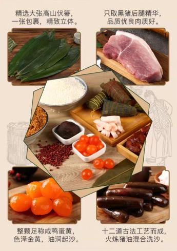 食材选用—东北米、“大红袍”赤豆、草香猪、高山箬叶。