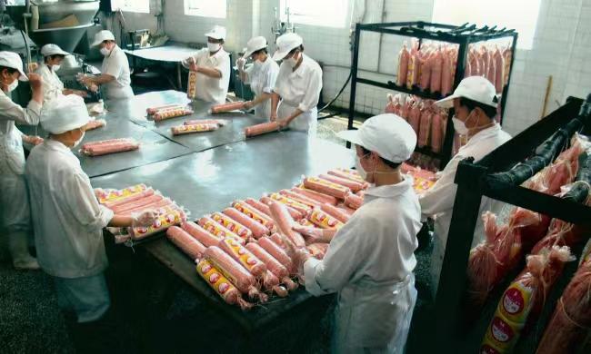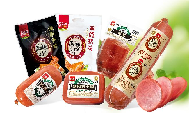 80年代,通过到全国各地考察,发现块状火腿将成为人们更加喜欢的食品,回来后马上安排技术科开始研发可以工业化生产的去骨成型的熏制类圆火腿。1986年以来,投资引进了欧洲火腿生产线,仿制和制造了滚揉机、斩拌机和提升机等。从原料肉部位的选择、嫩化、滚揉的时间控制、温度控制、灌装的成品大小、捆扎的方式及松紧、熏制用的果木选择、熏制时间等影响产品质量的因素寻找突破点,经过一年多的研究、试验,又引进了青岛厂家的技术人员对其生产工艺进行改进,对包装和捆扎方式进行改良,几经努力,1986年以双鸽圆火腿为代表的熟肉制品一经推向市场,1987年即获得原商业部优质产品称号。双鸽圆火腿陆续荣获中国香港国际博览会金奖产品、亚太博览会金奖。