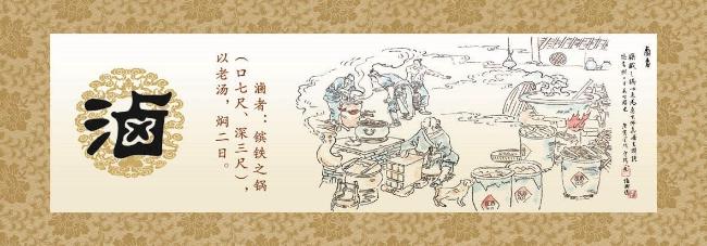 卤煮工艺。平遥牛肉传统的加工工艺中,卤肉工艺尤为缜密。平遥牛肉有“老汤煮肉”之秘。把大煮锅(口面七尺、深三尺的镔铁锅)里的水烧沸,煮水须在原存老汤内添加,不加锅盖,好让异味和水分蒸发出去。然后将腌缸(瓮)里腌期已满的肉块从冷窖中取出,依大小厚薄耐熟程度分层依次入锅,牛油盖顶。用急火沸煮2小时,慢火炖煮8小时,其间分别按软硬程度上下各翻动3~4次,最后灭火焖炖2小时,使锅中的煮肉慢慢熟化,最后,把煮熟的牛肉捞出来沥净,再放置大案晾干,或用肉钩挑挂在高大的架杆上降温,直到冷却,晾干后放入窖中冷藏入库同时把煮肉的老汤清渣去杂,以便再用。