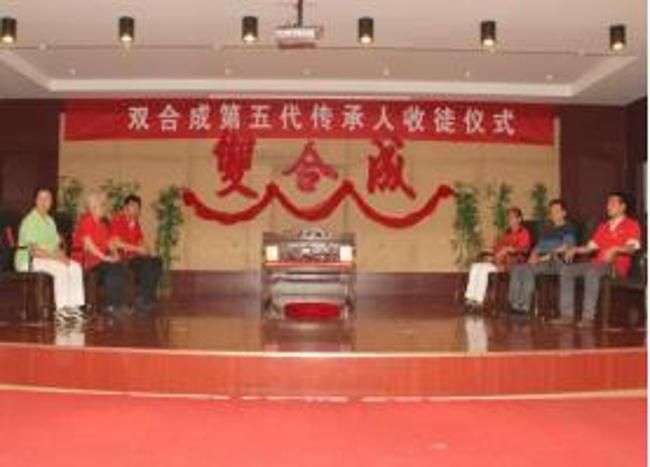 双合成在2010年和2011年举办三次盛大的拜师仪式,是“双合成”掌门人、国家非物质文化遗产保护项目“郭杜林”饼第四代传人赵光晋收纳顾红文、马淑蓉、孙翘、孙孆真妮、李保卫,崔改莲、杨翠香、刘东方等九十五人为徒弟。其中王彩珍、牛建梅、康润虎、闫旭红、潘美凤、郑栓成、王旭芳、问祯、张伟、侯文军等人为“郭杜林”晋式月饼制作技艺传承人。赵光晋对弟子们进行传、帮、带,在向弟子们讲解“郭杜林”月饼悠久的历史及文化渊源的同时,组织弟子们现场观摩学习“郭杜林”月饼制作技艺,让弟子们在理论和实践上学习“郭杜林”月饼制作的传统技艺和深刻的文化内涵,进一步提高了“双合成”的传承发展能力,使“郭杜林”晋式月饼传统制作技艺在新的历史条件下继续传承与健康发展。